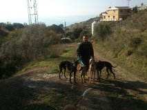 Dioni walking the galgos, .. "the best part of the day for them!" man's best friend, now rescued by a man! Learning to have faith again in a man, to trust and see here theres no pain.